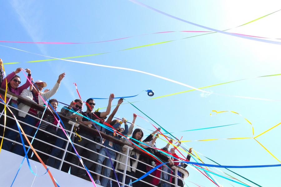 今日迎接更多旅遊同好登上和平號,一個個陌生的面孔,也許在接下來的航程中,他們會成為您人生中最難以忘懷、最深刻的朋友。(橫濱已經登船的貴賓,今天不能下船)