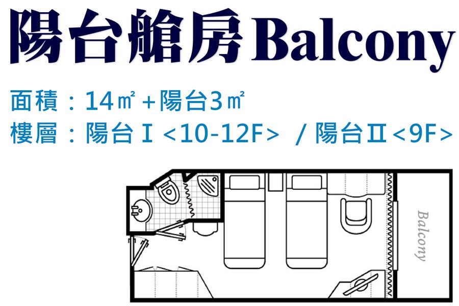 ※依航程啟航日計算與未滿13歲(國中生以下)同行者,恕無法入住配房房型。