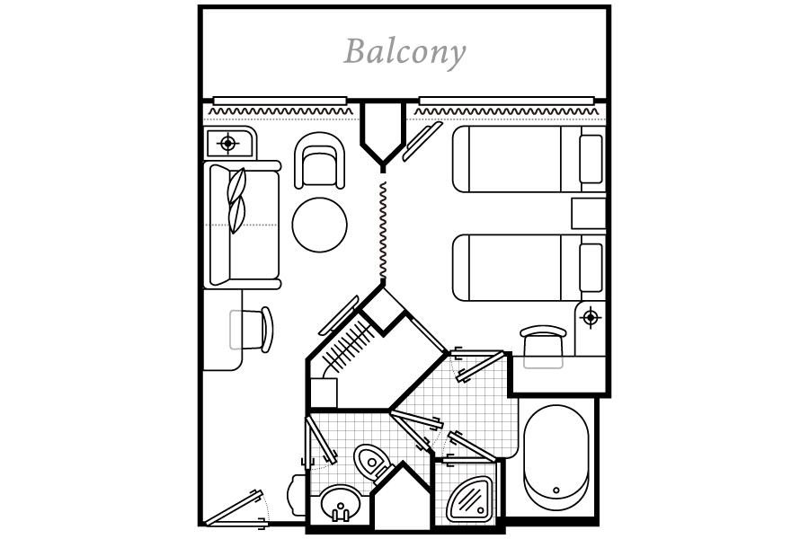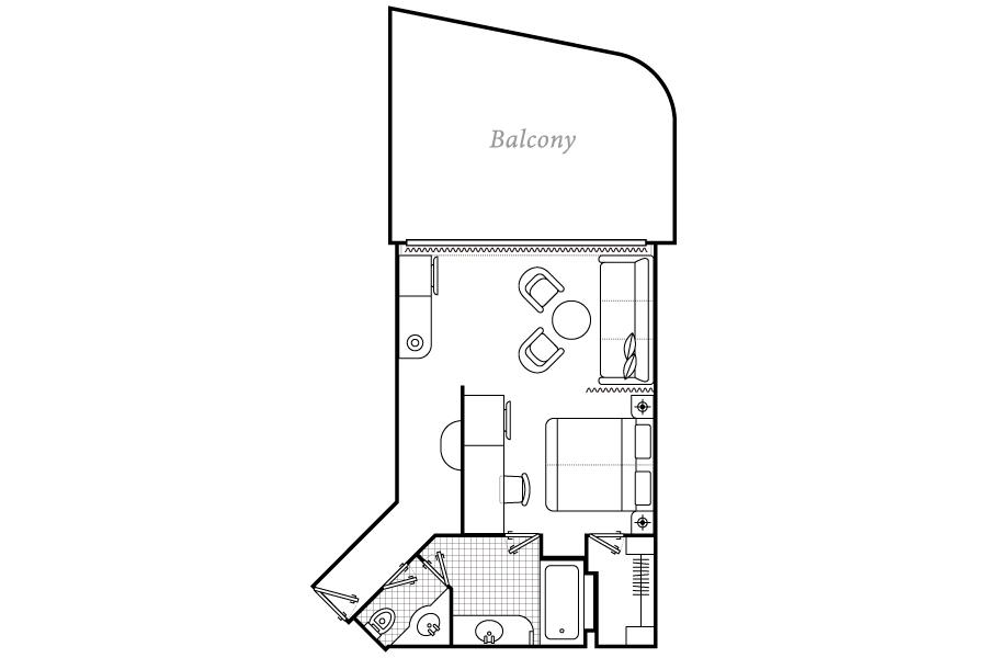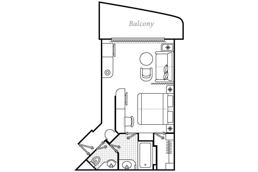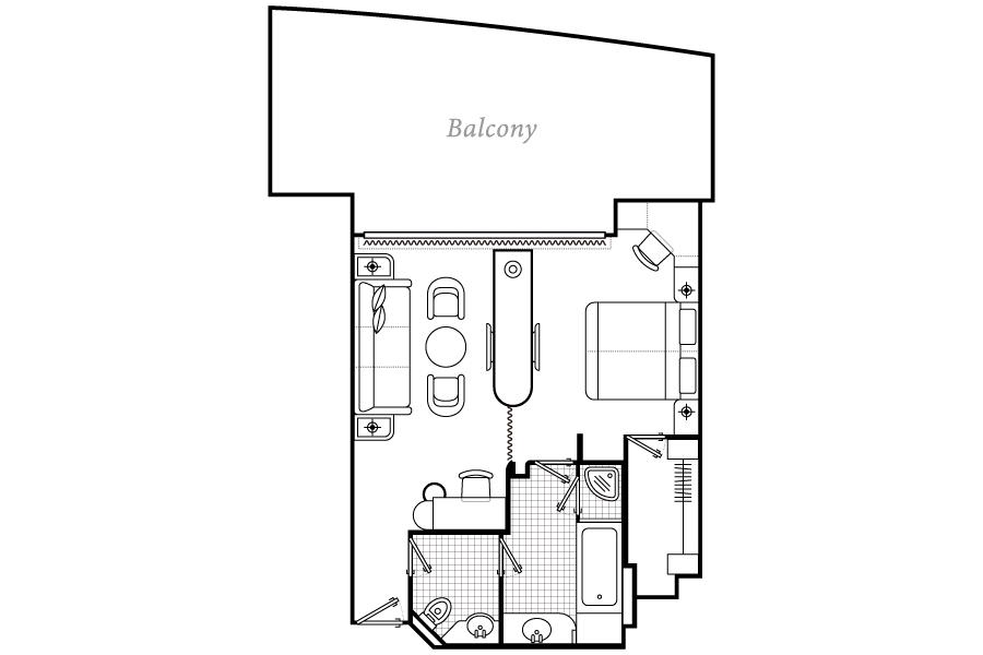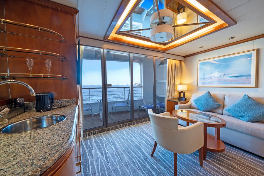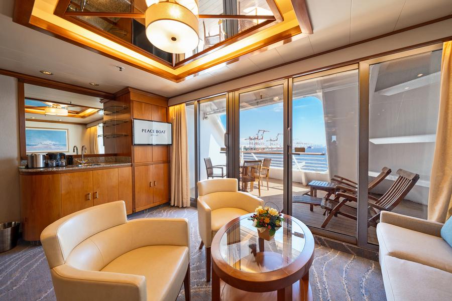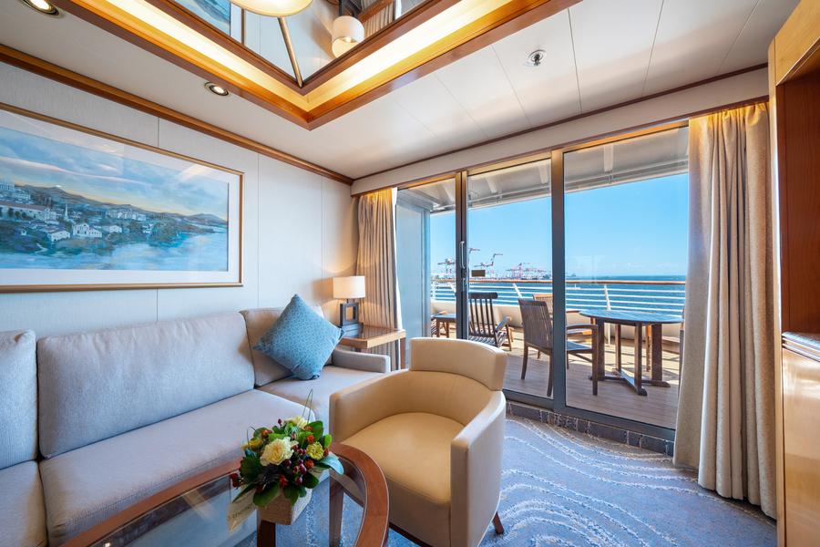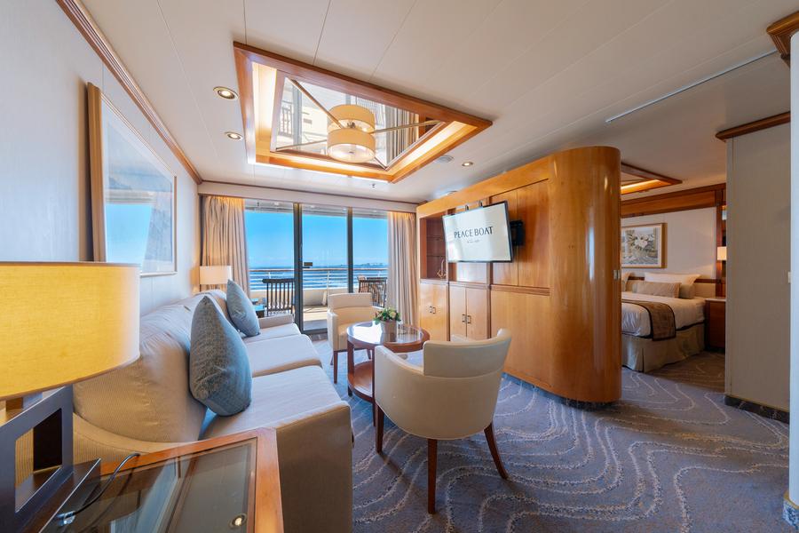 寬敝的起居空間與休息就寢的臥房空間分開,讓您渡過遊輪特有的優雅時光。