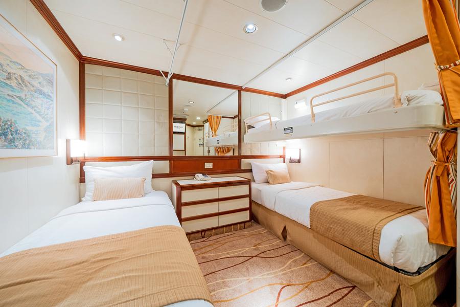 ※即使您預訂單人/雙人房,艙房內也可能會有附設上舖設施,恕無法指定艙房。